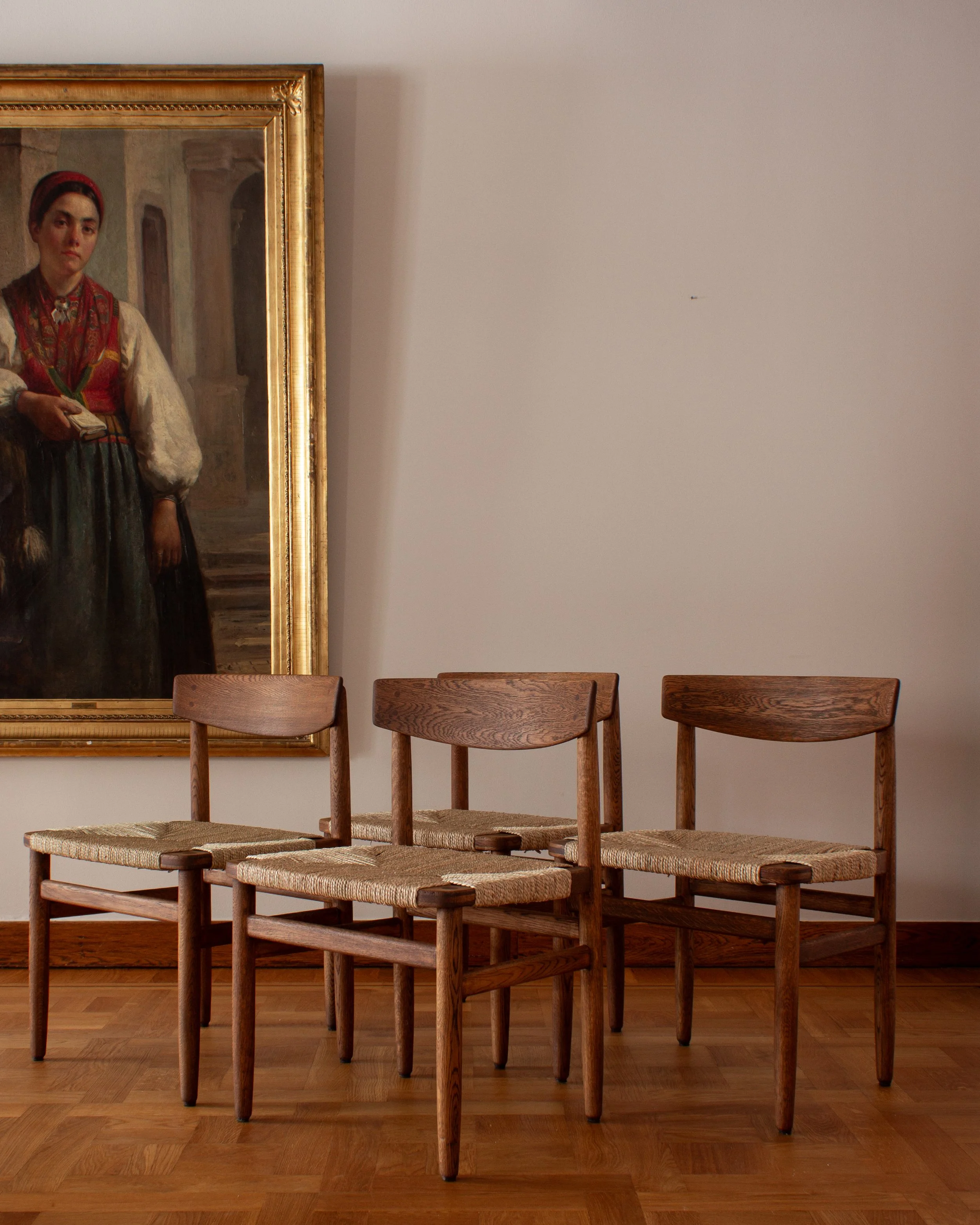 Set of 4 "Øresund" 537 dining chairs in oak and rush seats, designed by Børge Mogensen.