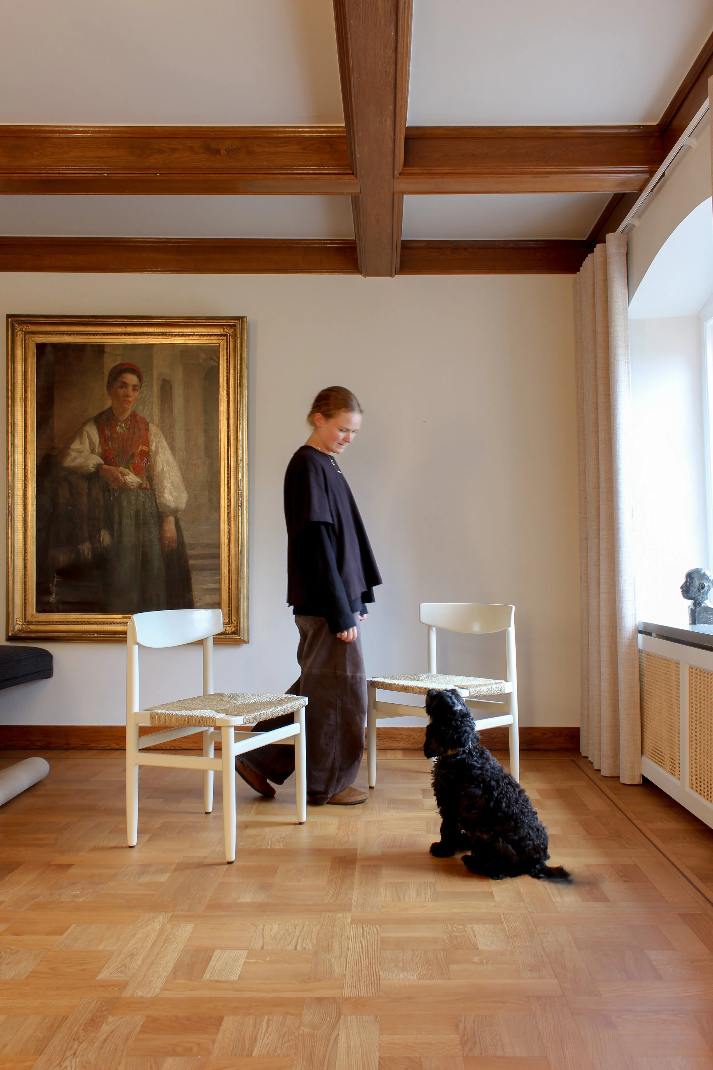 Set of 2 Øresund model 537 dining chairs in newly painted oak and new seaweed rush seats